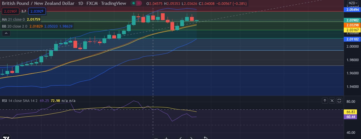 • Immediate support is seen at 2.0364 (38.2%fib) and break below could take the pair towards 2.0313 (5DMA).