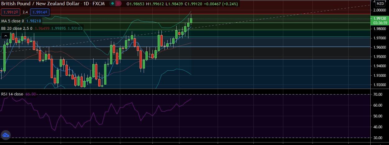 • Immediate resistance is located at 1.9960(23.6%fib ), any close above will push the pair towards 1.9981 (Higher BB).
