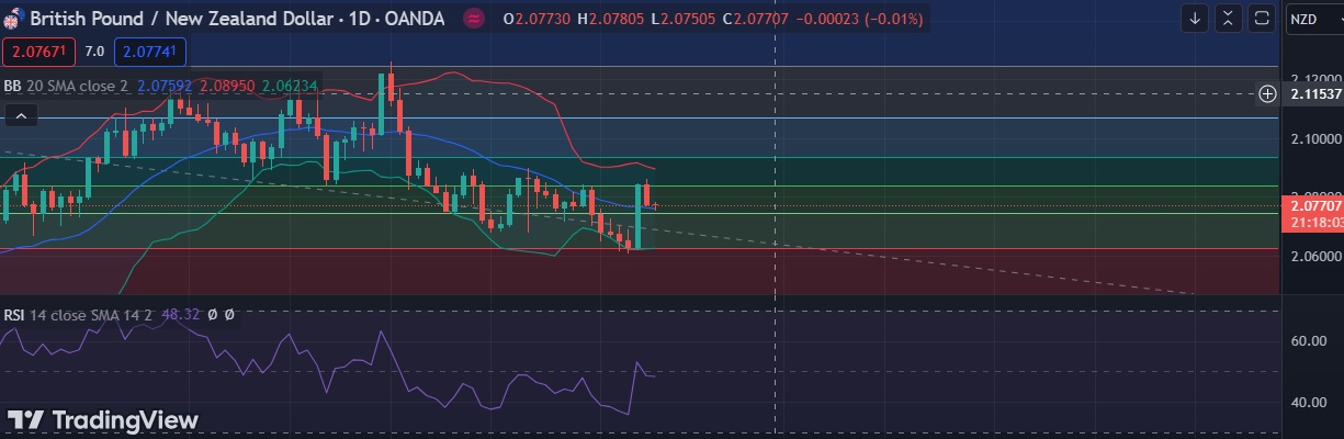 • GBP/NZD slipped lower on Monday as investors awaited UK employment data for further impetus.