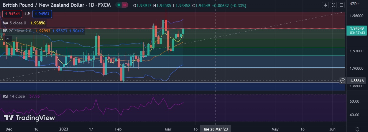 • Immediate resistance is located at 1.9456(23.6%fib), any close above will push the pair towards 1.9533(Higher BB).