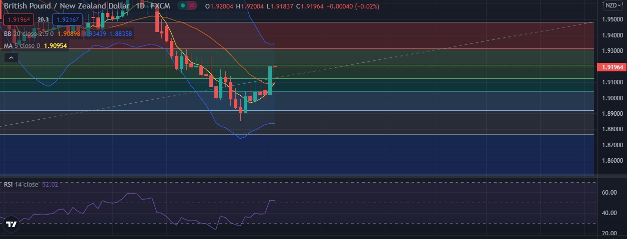 • Immediate support is seen at 1.9124 (50% fib) and break below could take the pair towards 1.9041 (61.8% fib).