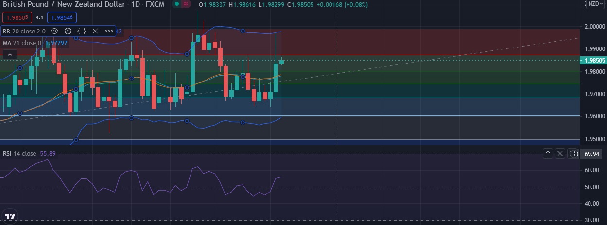 • Strong support is seen at 1.9800 (38.2%fib) and break below could take the pair towards 1.9778(21DMA).