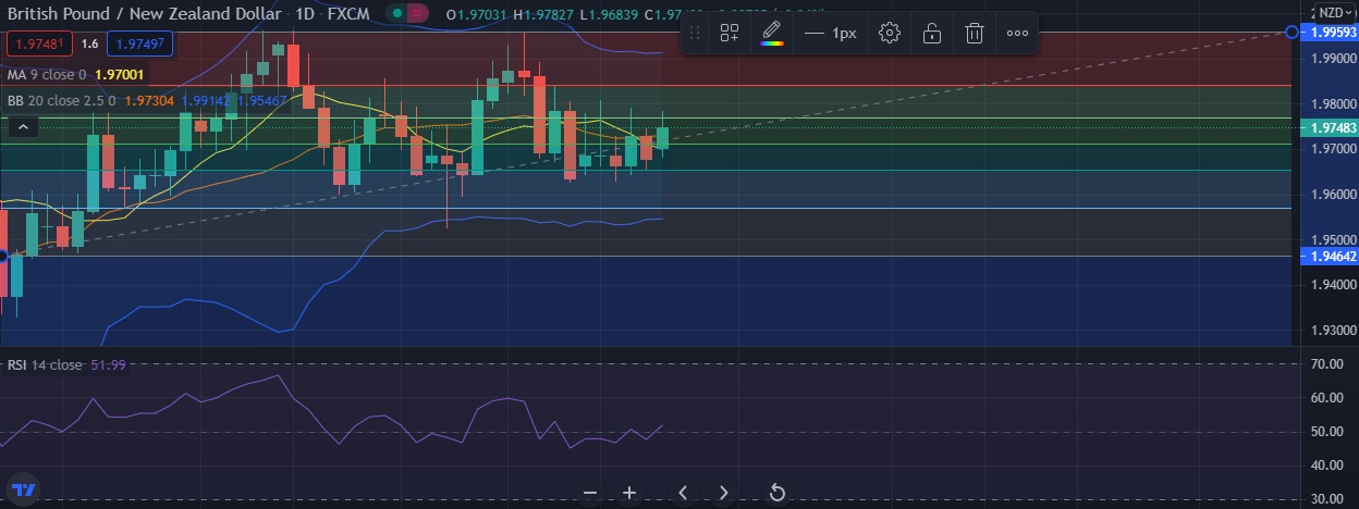 • Immediate support is seen at 1.9708 (50%fib) and break below could take the pair towards 1.9650 (61.8%fib).