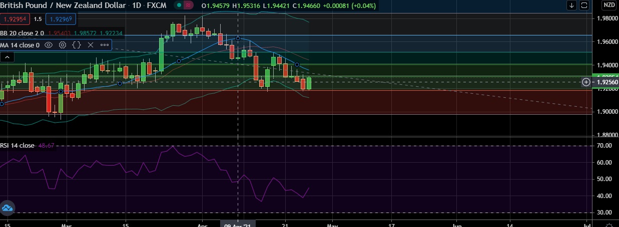 • Immediate support is seen at 1.9183(23.6% fib) and break below could take the pair towards 1.9123 (Lower BB).