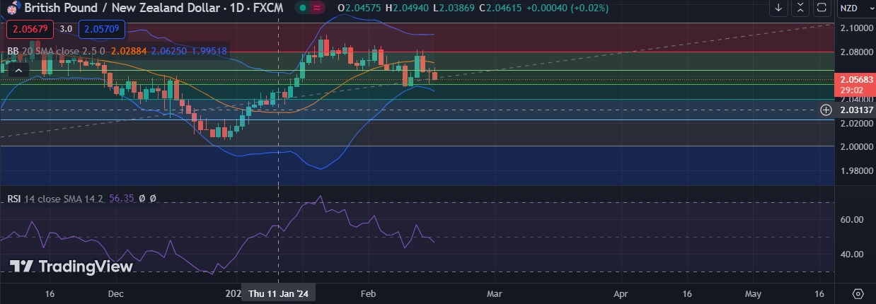 • Immediate support is seen at2.0526 (50%fib ), break below could take the pair towards 2.0456 (Lower BB).
