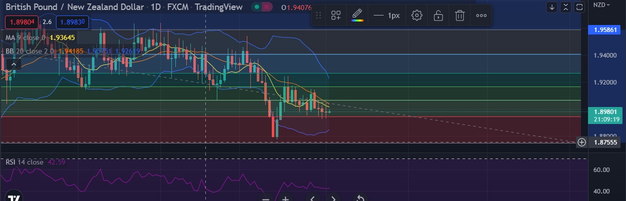 • Immediate support is seen at 1.8946 (23.6%fib ) and break below could take the pair towards 1.8849 (Lower BB).
