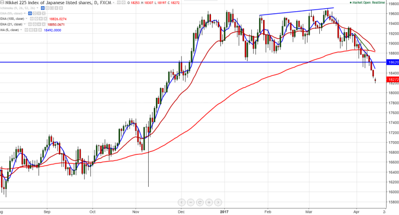 - Nikkei trades weak on account of stronger yen and weak global markets .Global U.S dollar and U.S bond yields fell on Friday after weaker than expected U.S economic data hits investor sentiment along with worries over North Korea and upcoming French election.