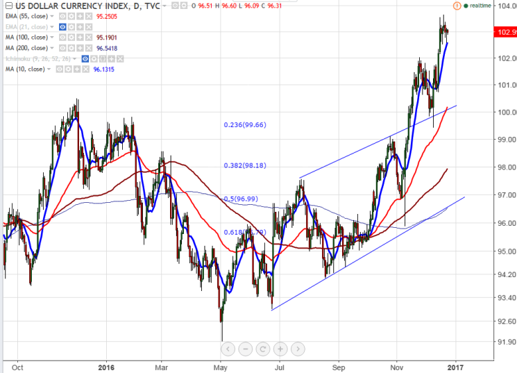 - The U.S dollar index has slightly recovered after declining till 102.59. The index took support near 10- day MA and is currently trading around 102.99.