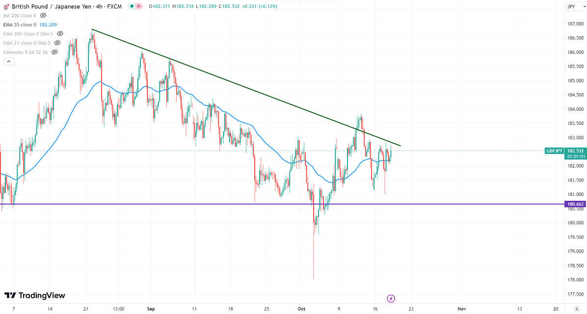 GBPJPY showed a minor pullback after the UK inflation data. It hit a high of 182.73 at the time of writing and is currently trading at around 182.546.