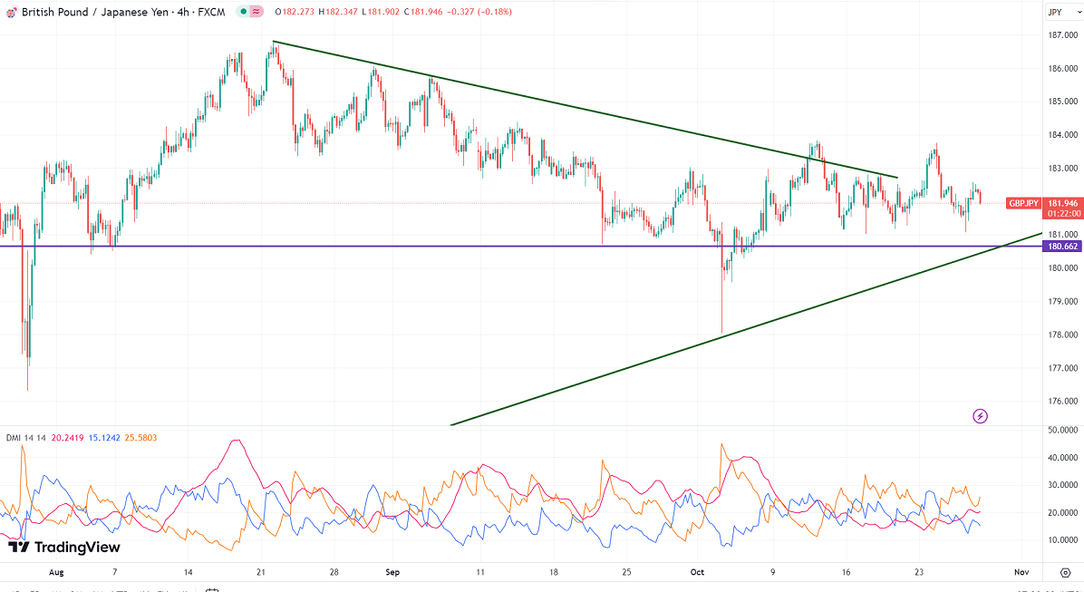 GBPJPY showed a minor pullback after a decline of more than 250 pips. It hit a high of 182.58 yesterday and is currently trading at around 182.035.
