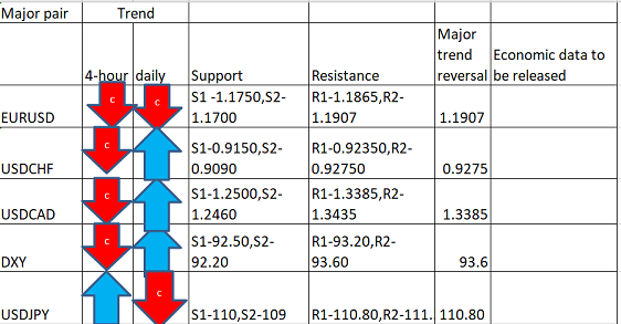 Major Pair levels and bias summary