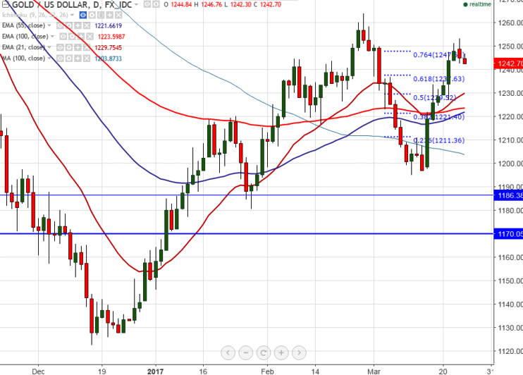 FxWirerPro: Gold struggles to close above $1250, good to sell on rallies