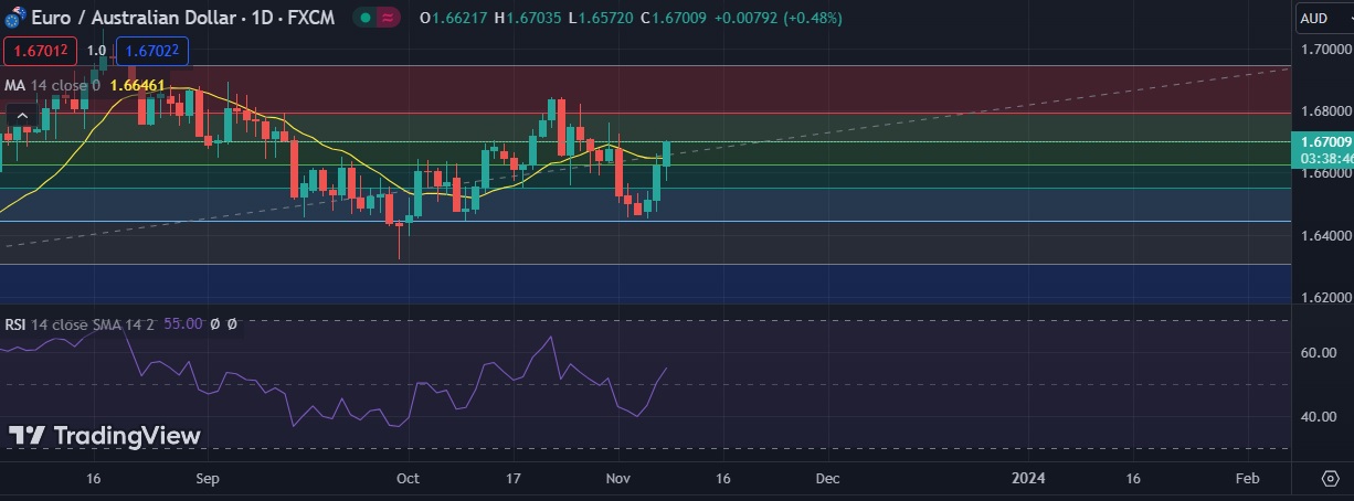 • EUR/AUD rally extended towards 1.6700 on Wednesday as Australian dollar continued its downward march following the RBA’s 25 basis point rate hike.