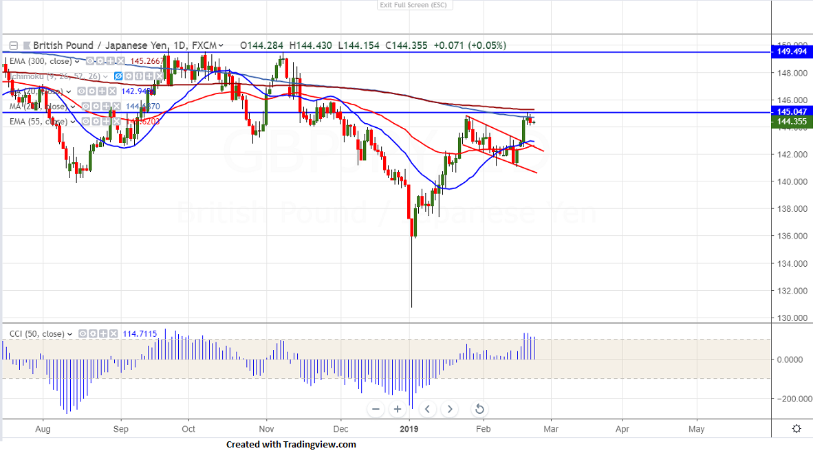 On the lower side, near term support is around 144 and any break below will drag the pair to next level till 143/142.48 (Feb 19th low). Any major weakness only below 142.48.