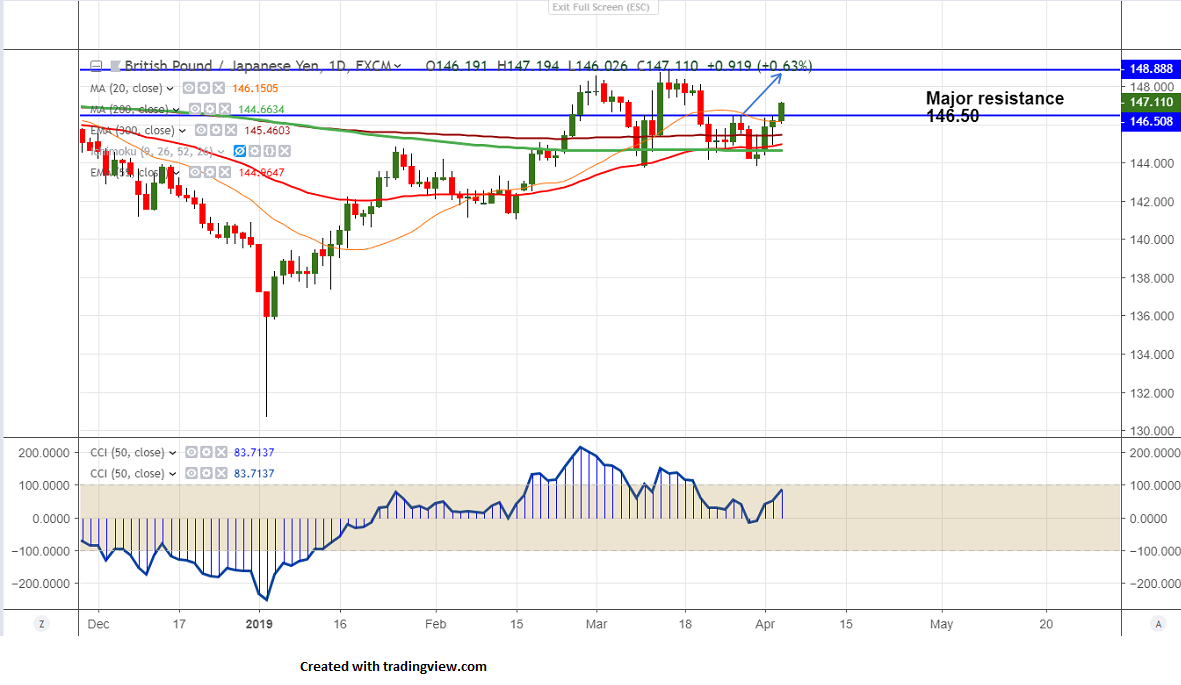 The near term resistance is around 147.20 and any break above will take the pair to next level till 147.65/148.27.It should break above 148.87 for further bullishness.