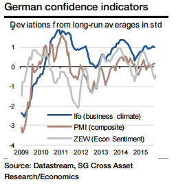 Analysts expect an further improvement in current conditions, although some uncertainty created by VW scandal and the recent Paris terror attacks may affect. However, industry, trade and investment are likely to show poor performance, but this may be compensate by the resilient consumption and some fiscal easing.