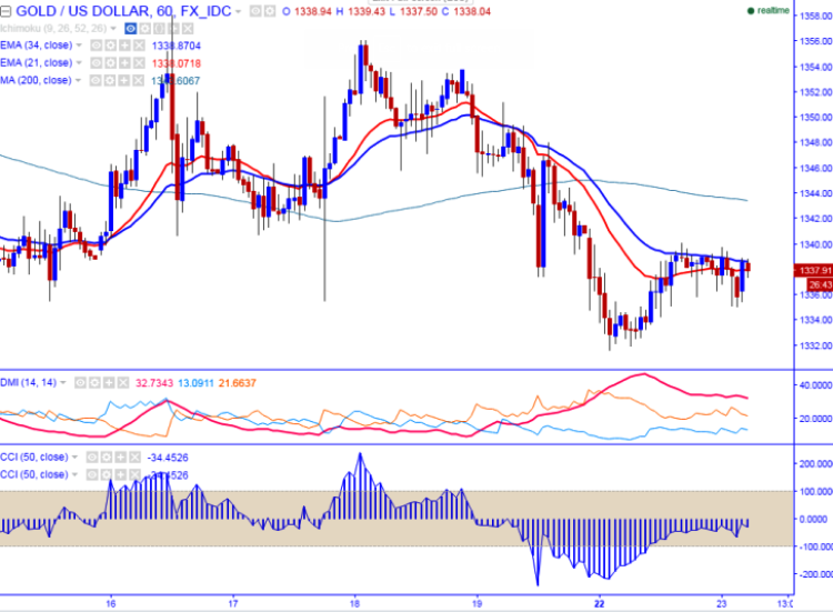 - In the hourly chart, gold is trading neutral and it should break above $1344 for further upside.