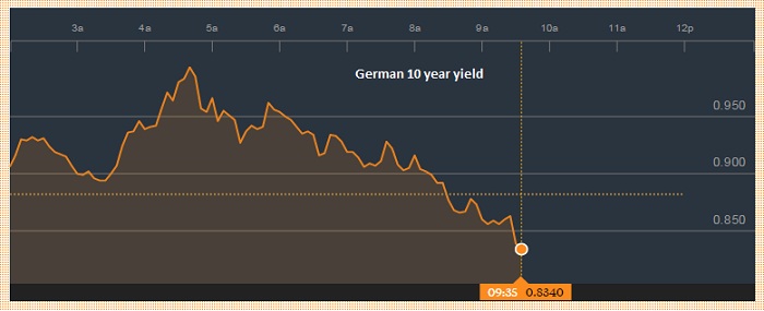 - German 10 year yield is down sharply trading at 0.83%, after touching as high as 0.992%.