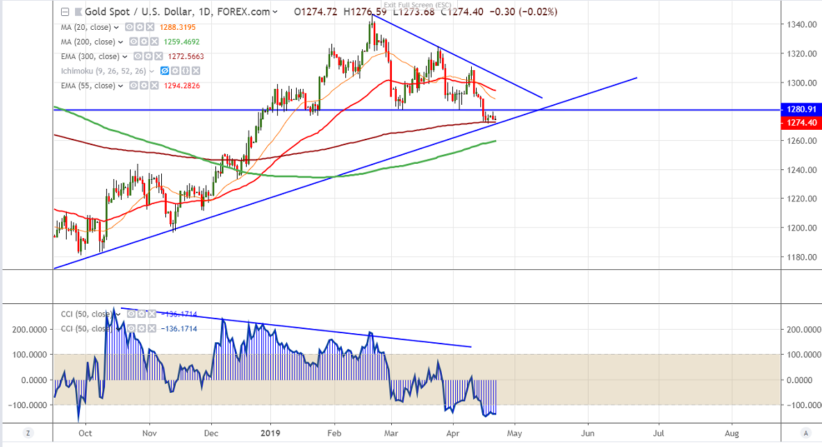 Gold is trading weak for 4th consecutive week and lost nearly $40 from high of $1310 made previous week.Yesterday yellow metal shown a minor recovery till $1279.70. The decline in yellow metal mainly due to strong dollar and easing US –China trade tensions. US dollar index recovered sharply and jumped more than 70 pips till 97.49 from low of 96.79. The yellow meal hits low of $1271 and is currently trading around $1274.25.