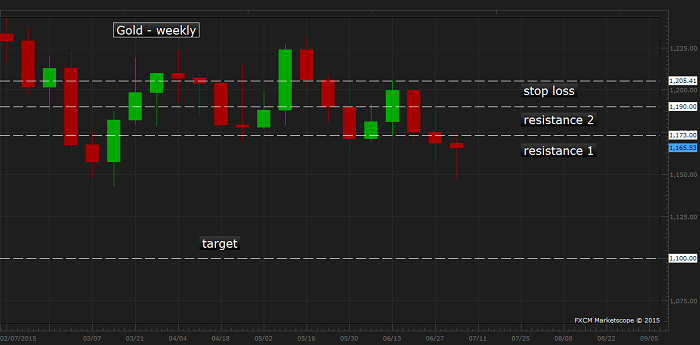 - It is advised not to sell gold at abrupt price but only at or very close to resistances. Resistance lies at $1173 and $1190.