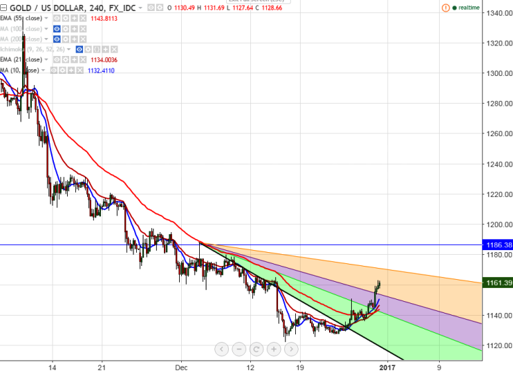 - Technically Gold is facing minor resistance at $1171 (Gann 8*1 line) and any break above will take the pair till $1188 (Dec 4th 2016 high)/$1197 (55- day EMA).