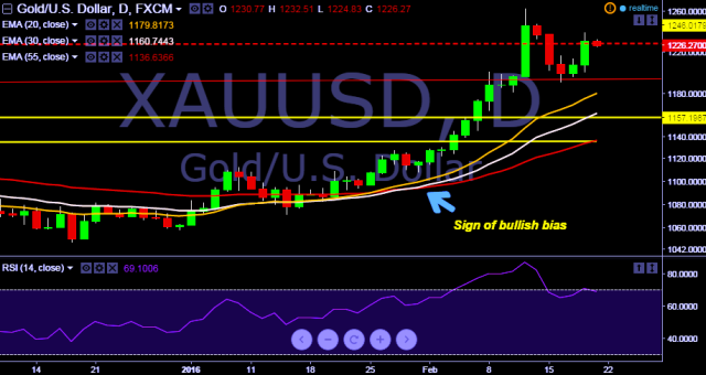 We prefer to take long position in XAU/USD around $1223, stop loss $1218 and target $1252 levels.
