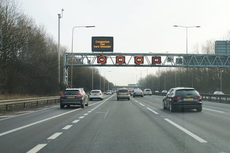 Smart motorways can reduce the speed limit to manage congestion. Bill Boaden, CC BY-SA