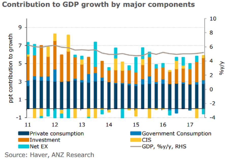 Indonesia’s economic growth is expected to improve slightly to 5.3 percent in 2018 as consumption demand rebounds, according to a recent report from ANZ Research. The Asian games will also help support the economic recovery. The GDP outcome and the expected trajectory are unlikely to influence current monetary policy.