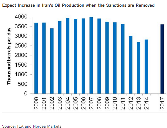 The removal of the sanctions means that Iran will again be able to ramp up production to full capacity, that is, increase output by 800k b/d.