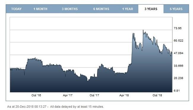 Similarly, the 52-week range has been on a roller coaster ride, hitting an all-time high of £80.97 in July and a bottom low of £25 in February. In 2019, there is a high likelihood that the share price will break the £85 mark if the growth witnessed in the second and third quarter of 2018 is anything to go by.