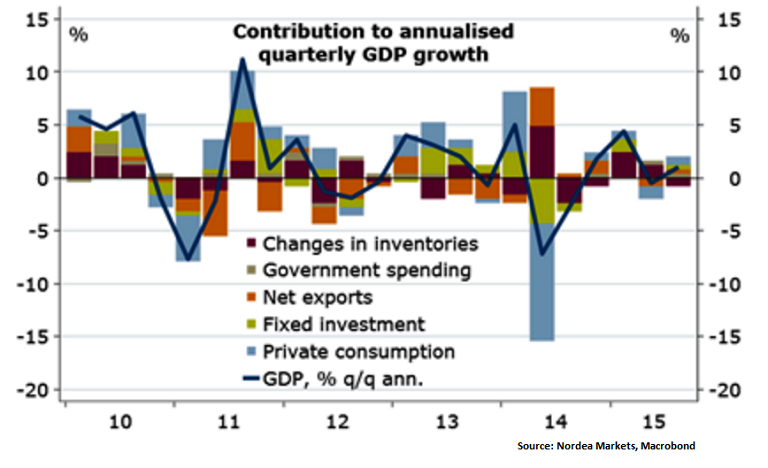 "We have kept our forecast almost unchanged from our September outlook and expect 1% GDP growth this year. Next year, the sales tax hike from 8% to 10% is likely to hurt consumption, causing growth to dip to 0.6%", says Nordea Markets in a research report.