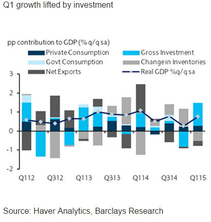 "Although the BoK recently lowered its 2015 growth forecast to 3.1% from 3.4%, we are turning more optimistic on Q2 as leading indicators continue to suggest an inflexion point for activity", says Barclays.