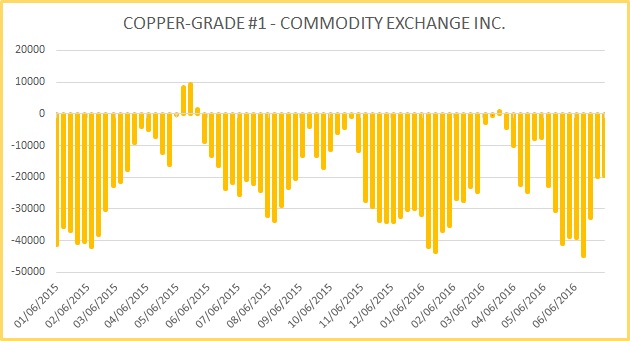 Copper net short position saw only marginal decrease. Net short position decreased by 345 contracts to -19.5K contracts.