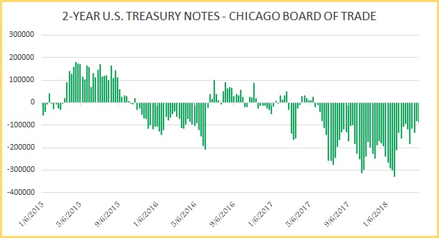 5-year treasury short positions rose last week, and by 53,016 contracts that brought the net position to -573.5K contracts.