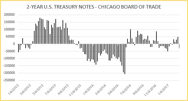 5-year treasury saw a covering in the short positions, where shorts were decreased by 17,583 contracts that brought the net position to -287.4K contracts.