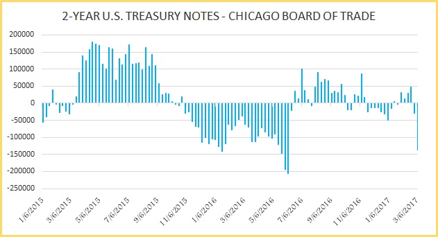 5-year treasury saw an increase in the short positions, where shorts were increased by 124,210 contracts that brought the net position to -411.6K contracts.