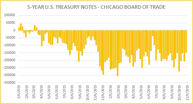 5-year treasury saw a very sharp decrease in net long position by 57,651 contracts that brought the net position to -145.6K contracts.