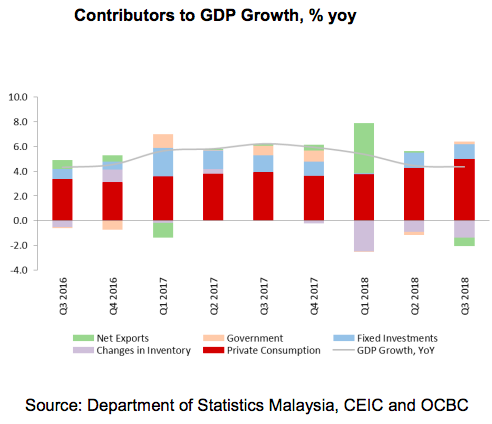 Malaysia’s economic growth for the fourth quarter of this year is expected to come in at 4.2 percent y/y, while the full-year expansion is seen at 4.6 percent y/y, according to the latest research report from OCBC Bank.