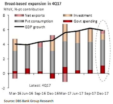 "GDP growth registered 5.9 percent in 2017, up from the commodity-/oil-driven slump in the preceding two years and significantly stronger than the 4.7 percent in 2013. While expected to be a tad slower at 5.0-5.5 percent, this year’s growth will be more broad-based and led mainly by robust domestic growth," the report added.
