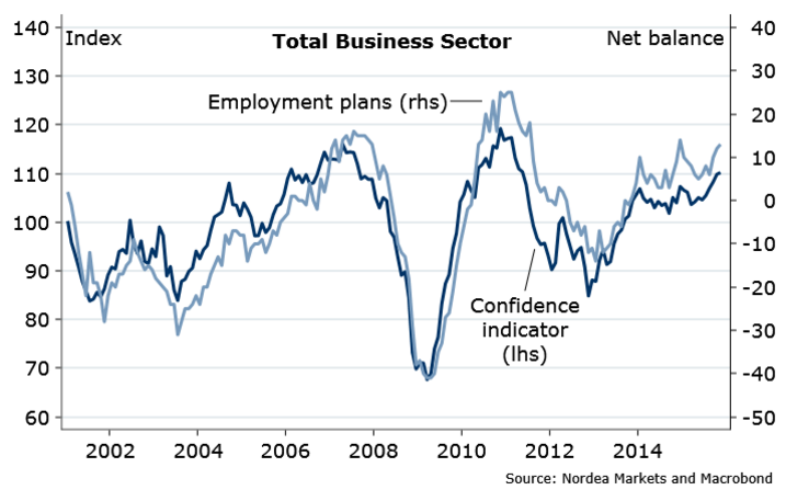 In manufacturing industry of Sweden, sentiment for private services and construction post a robust growth rate and thereby raise the confidence index for the total business sector to its highest level since May 2011. As a result, being supported by manufacturing sector the GDP of the economy is expected to post a robust growth rate in Q4.
