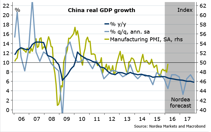 Stock and currency market turbulence has intensified concerns about a possible hard landing in China. It is true that the economy is slowing but there is limited risk of a sharp slowdown this year. Strong headwinds for the manufacturing and export sectors will slow the economy further this year but will not result in a collapse due to the massive government stimulus. China's real GDP growth has been on a downward trend ever since it peaked in Q2 2007 and is likely to decline further this year.