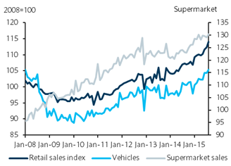 Mexico's retail sales increased 1.5% m/m sa in August as a result of strong sales in hardware, apparel and supermarket sales, partially compensated by declines in domestic equipment, paper and entertainment and food sales. In annual terms, retail sales increased 6.4% y/y, the highest expansion since February 2012.