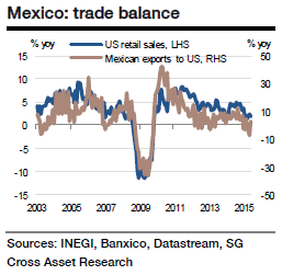 In general, stronger manufacturing export growth in H2 2015 and 2016 should help keep the current account balance unchanged, although lower oil prices could also keep it from improving. Falling oil prices have hit both the external account and Mexico's public finances. As a result, the current account balance deteriorated by between 0.5% and 0.8% of GDP on a structural basis, and it would take considerable improvement in manufacturing exports or penetration of new markets to see the current account return to its former size.