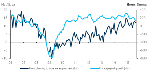 "On balance, we view the sustained upward momentum in business sentiment as an important building block toward better private investment in the US", says Barclays.