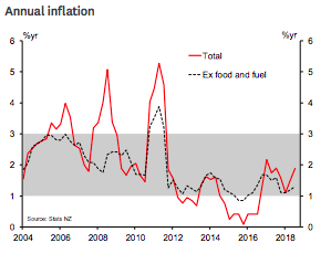 Fuel prices accounted for about a third of the increase in the CPI for the quarter, and are likely to push annual inflation above 2 percent in the next quarter. Looking past the direct impact of fuel price rises, underlying inflation has continued to tick up at a gradual pace, though on most measures it remains in the lower half of the RBNZ’s target range.