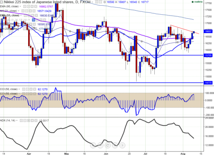 - Nikkei225 has broken minor resistance 16600 and jumped till 16720 yesterday.It is currently trading around 16690.