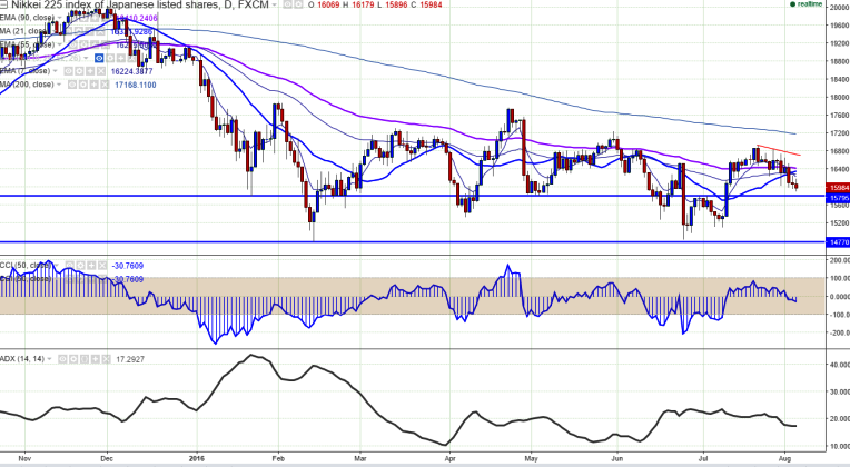 Nikkei225 breaks major support at 16000, decline till 15800/15500 likely