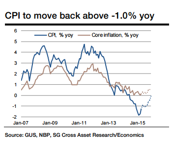 "In our view, the CPI will turn positive in December this year. Monday, 15 Jun B", said Societe Generale in a report on Monday.