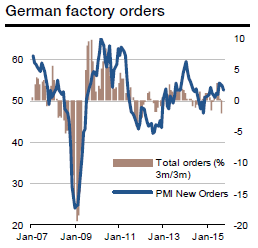 "While domestic orders could rebound more strongly following the regular volatility in this series and continued resilience in the domestic sector, weare more concerned with foreign orders which likely will remain weak. The September data is also unlikely to fully capture the fallout from the VW scandal, and therefore the orders of motor vehicles is expected to take a bigger hit as of the October data", says Societe Generale.