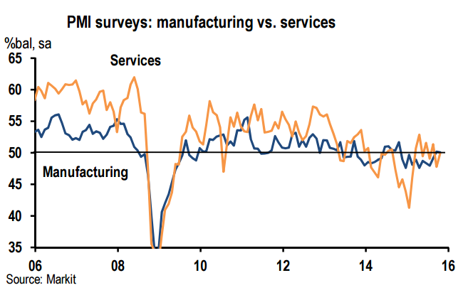 Rosstat's business survey showed a marginal rise in manufacturing business confidence in November and a further solid rise in mining confidence. The business activity index in the services PMI jumped to 49.8 from 47.8, recouping most of the prior months' losses. The employment index also rose in November. However, the forward-looking new orders and future business expectations measures both declined. The divergence between the tradable and non-tradable (services) sectors of the economy is expected to persist as the economy adjusts to a lower real effective exchange rate.